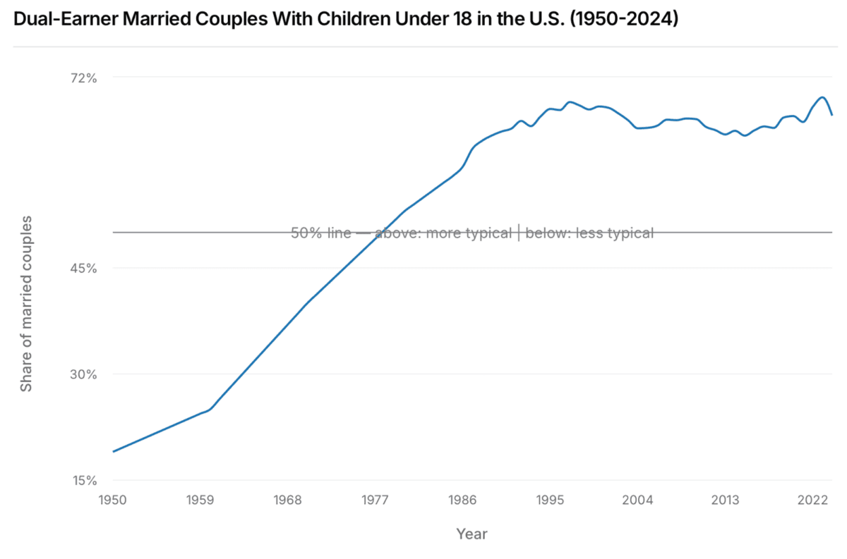 What the chart does not tell you is that the main reason for the rise in real household income is the shift toward more dual-income households mostly driven by increased female labor force participation when kids are younger than 18.
