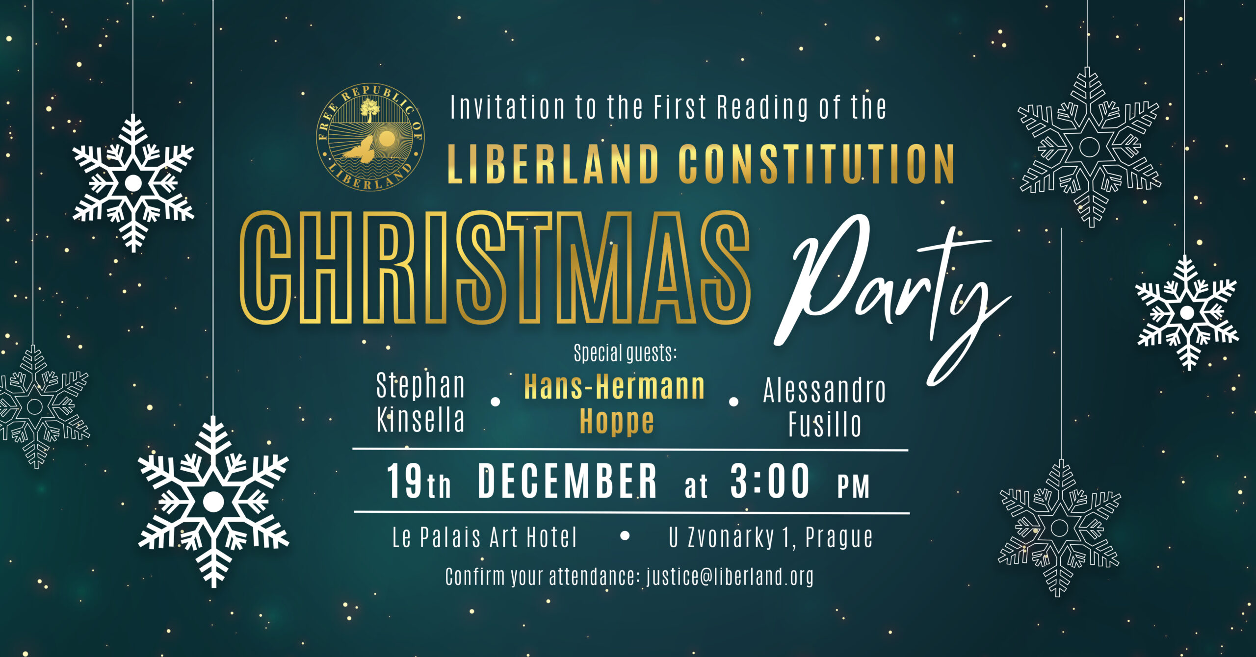 Hans-Hermann Hoppe (Germany/Turkey), StephanKinsella (USA), and Alessandro Fusillo (Italy) were guests and speakers at the Liberland Christmas Party and Constitution Celebration held in Prague at the elegant Le Palais Art Hotel in Prague on 19 Dec. 2025. Invited by long-time PFS member and Liberland President and Founder Vít Jedlička, the gathering featured speeches, presentations, a press conference, and various awards, presentations, and announcements. President Jedlička awarded the Liberland Award of Merit to Professor Hoppe and Mr. Kinsella, and citizenship and passports to Mr. Kinsella and Mr. Fusillo. Photographs from the event may be be found at Prague 2025: Liberland Constitution Celebration: Photos; also Vit’s post at Facebook, my facebook post, and online at google drive (full set) and here (Kinsella set). [continue reading…]